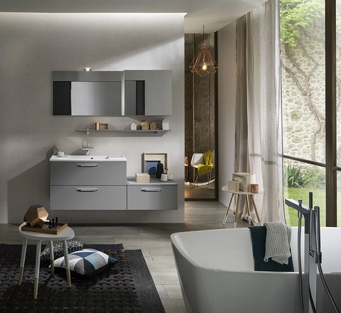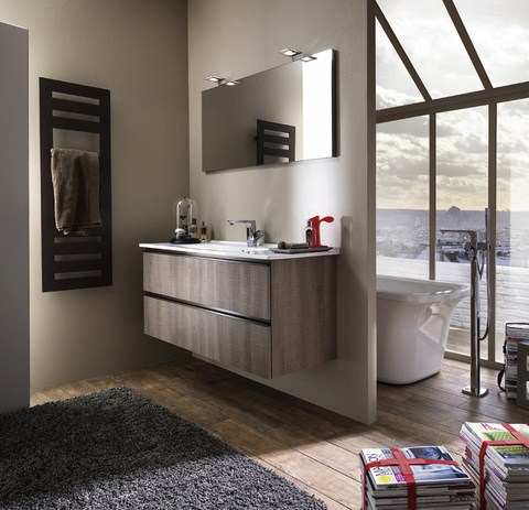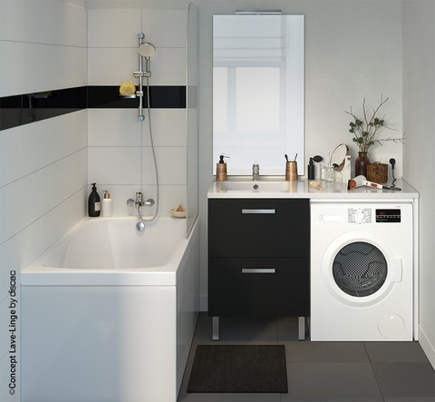 Dotez votre salle d'eau d'un lave linge avec notre concept 124 cm comprenant : Miroir Led